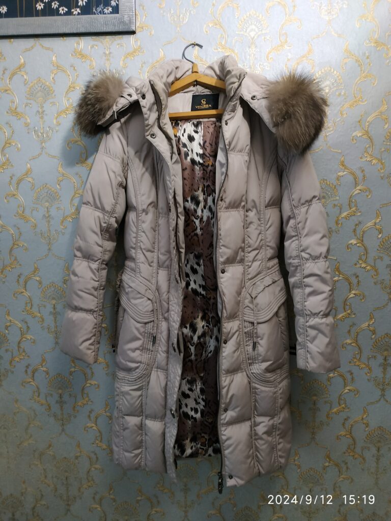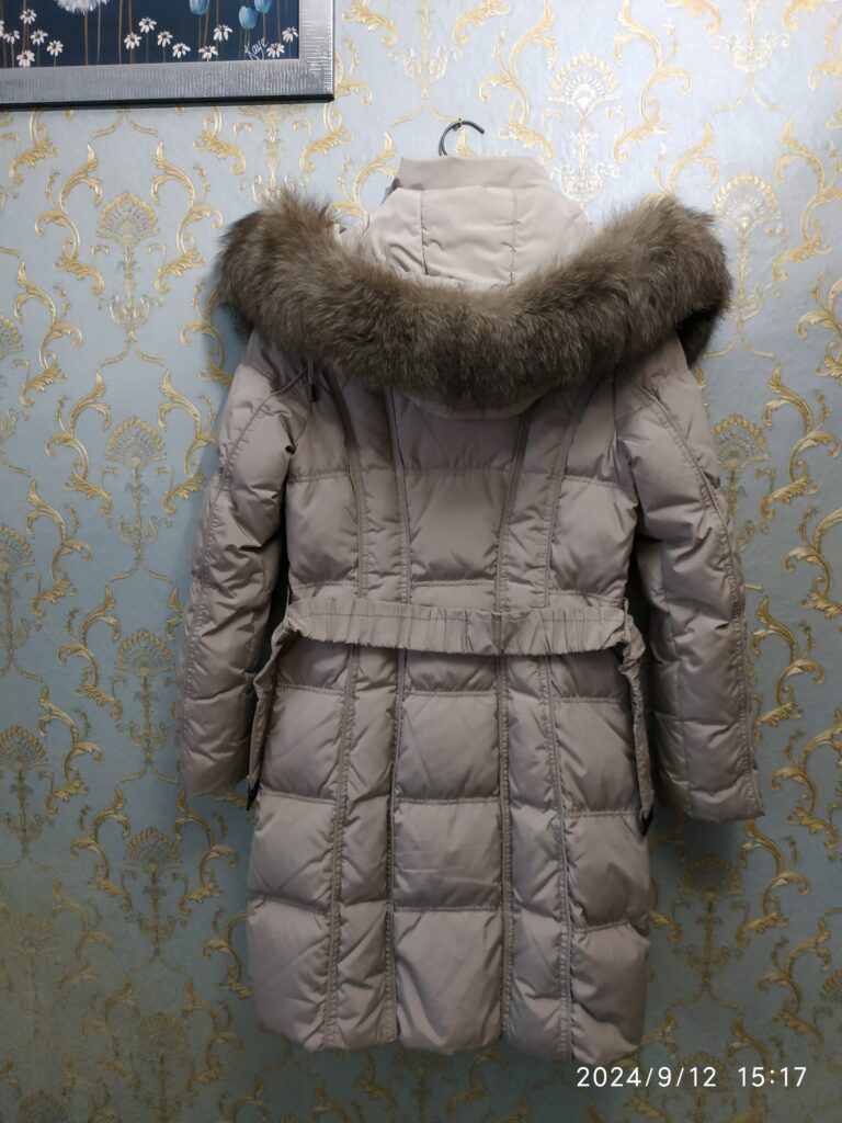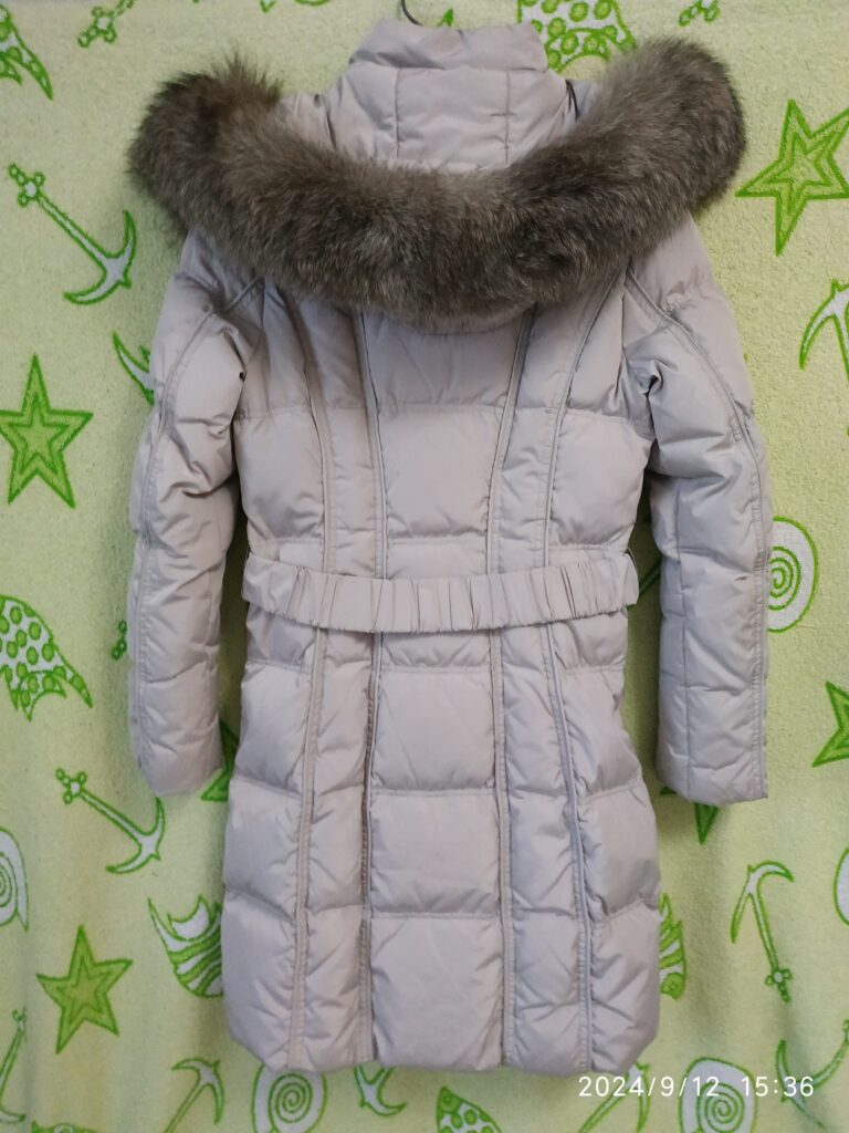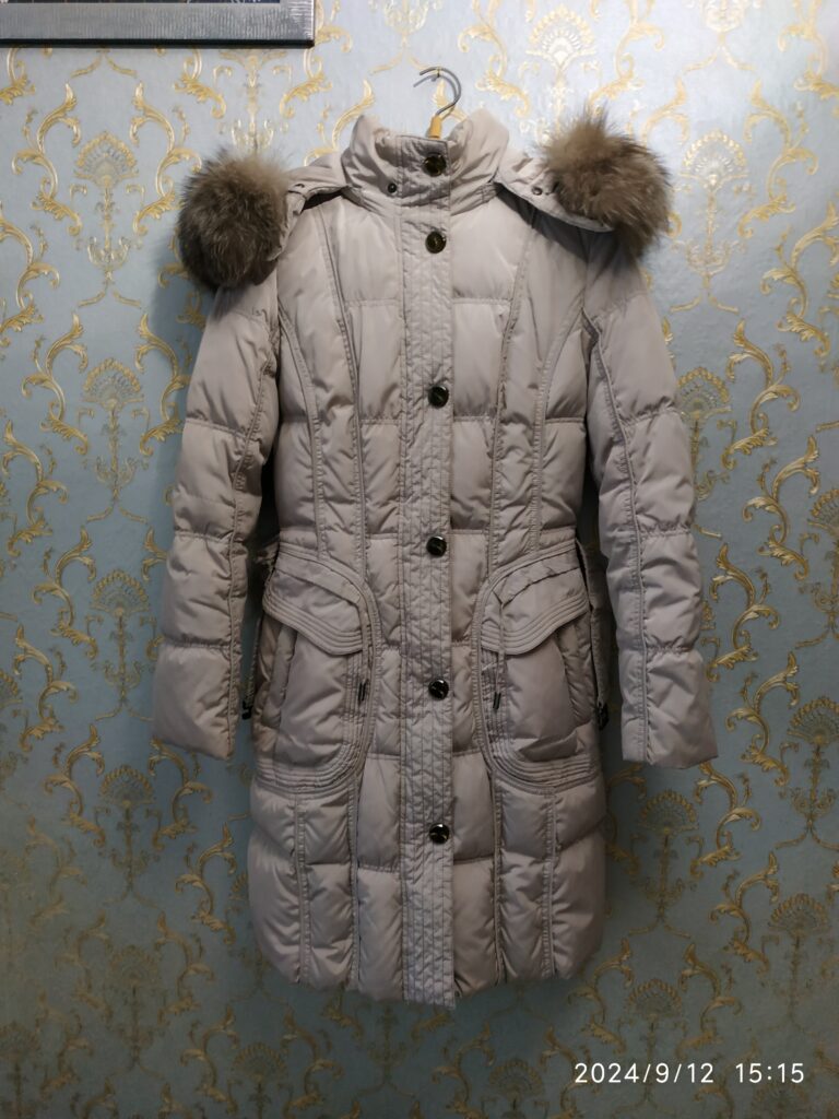 Женский зимний пуховик с натуральным мехом на капюшоне Качество Покупали дорого . Состояние нового ,одевалась пару раз, прошло чистку можно сразу носить. Длина рукава от плеч 61 см, плечи 39см, под мышками 45 см., длина изделия 90см от воротника