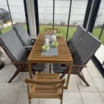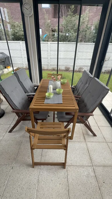 Vand 4 scaune din lemn tip Nammaro Ikea. Scaunele sunt din lemn natural cu un design simplu și elegant potrivit pentru a amenaja o terasă sau o gradina. Este un set practic și durabil care poate fi folosit în aer liber pe tot parcursul anului.