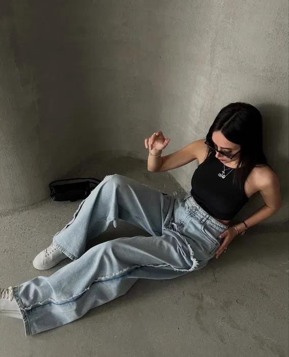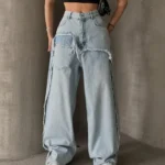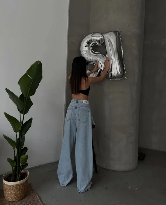 Blugi largi, model wide leg, cu talie înaltă – foarte comozi și în trend. Croiala oversized oferă un look modern și se pot purta ușor în ținute casual sau streetwear.