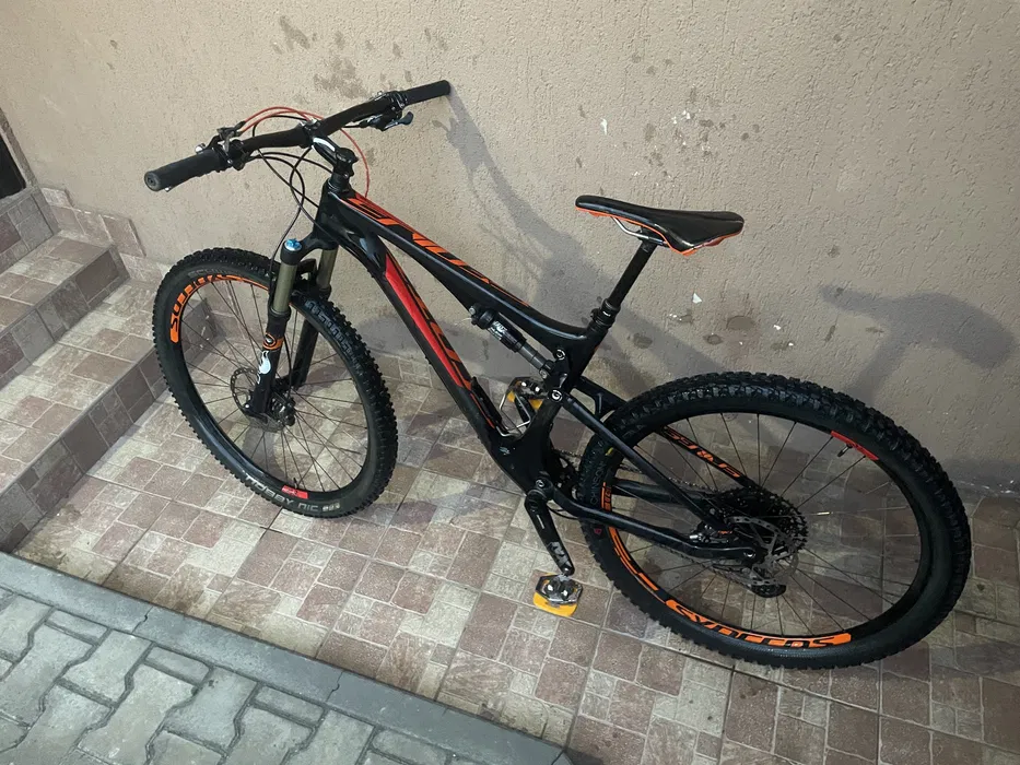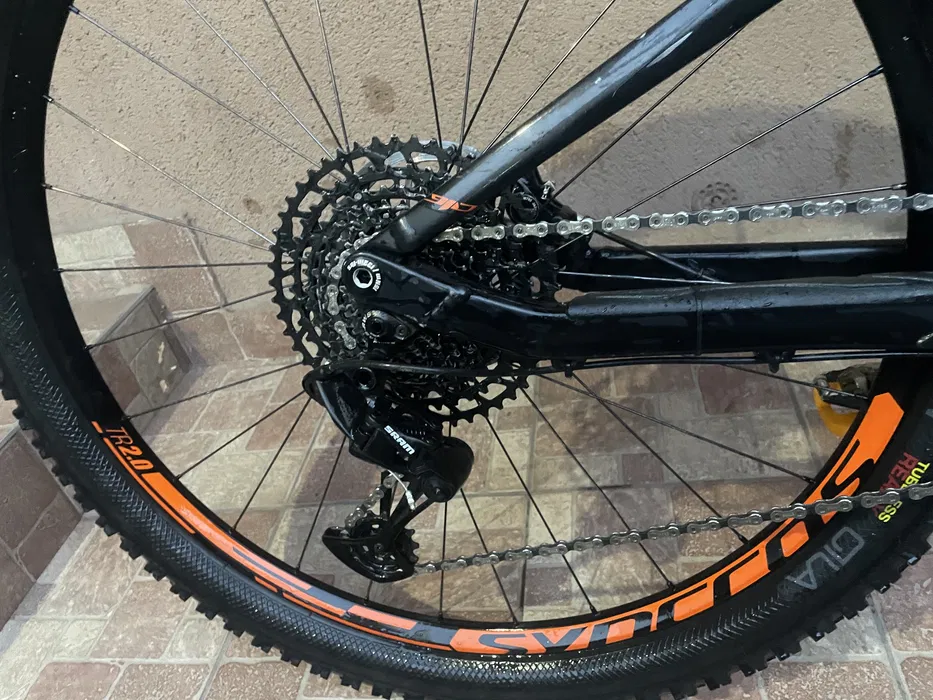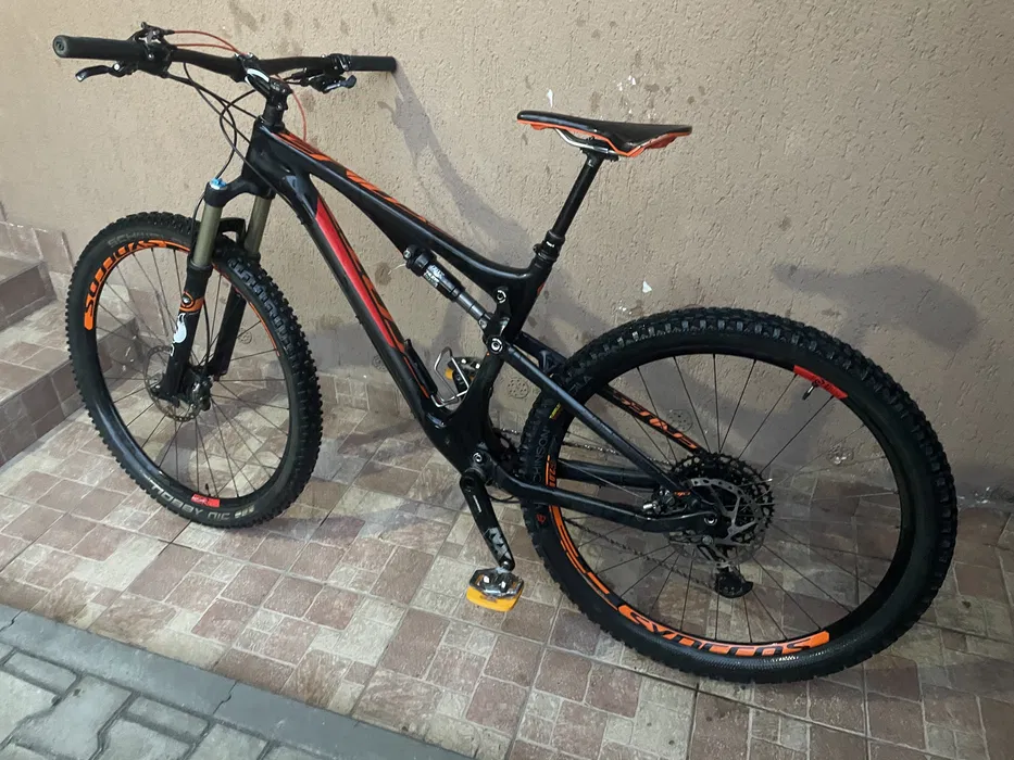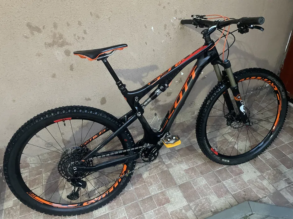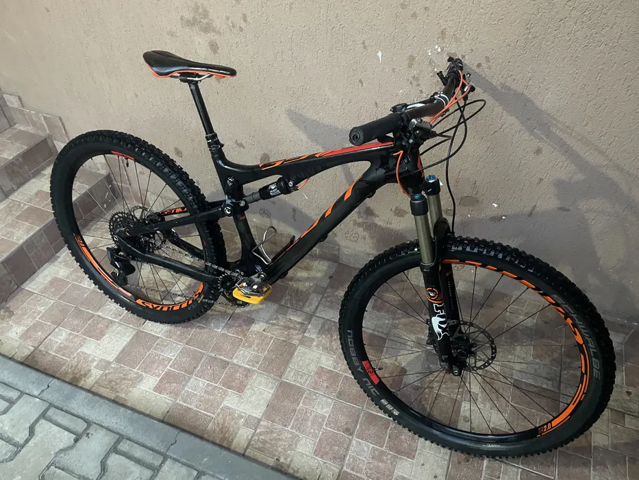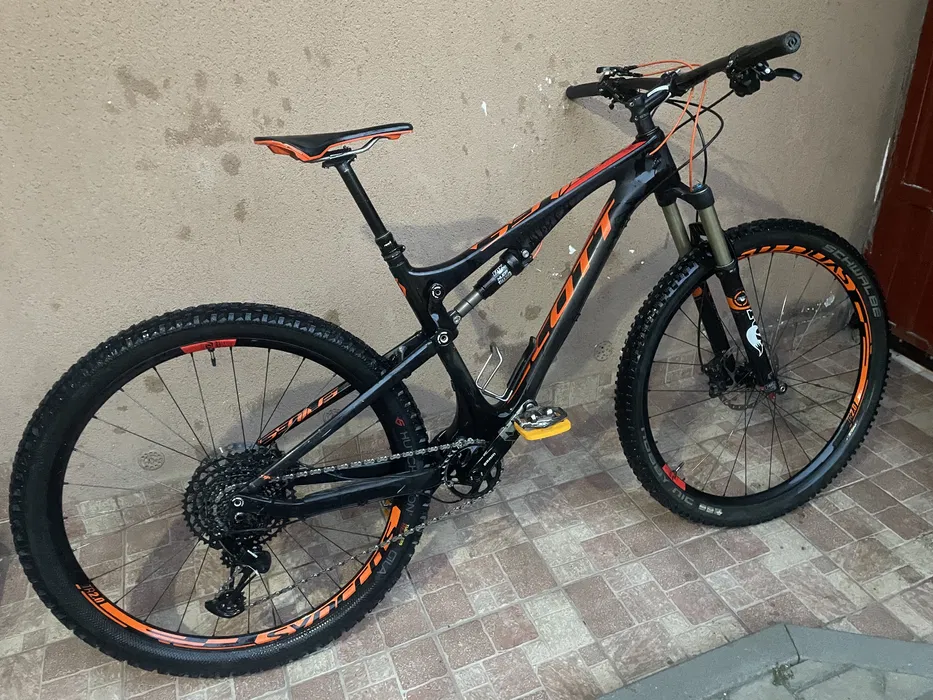 Mountain bike full suspension”Scott Genius”cu roti pe 29,cadru Carbon marime L, 1×12 pinioane cu schimbator Sram SX,, furca Fox 32 pe aer si shock Fox Nude Air (Twinlock )amandoua blocabile de pe ghidon ,frane hidraulice pe disc XT ,pedalier Sram NX,tija sa dropper RockShox Rewerb,etc!!!